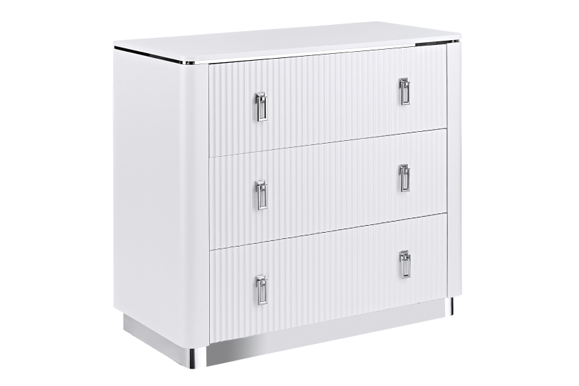 Комод Милан в цвете белый/серебро — стильная и изящная модель, выполненная в светлом благородном оттенке с элегантными серебряными акцентами. Такая мебель станет украшением спальни, гостиной или зоны хранения, придавая интерьеру благородство и современную аристократичность. Вместительные выдвижные ящики позволяют удобно хранить одежду и аксессуары, а декоративные фасады подчёркивают премиальный внешний вид комода.