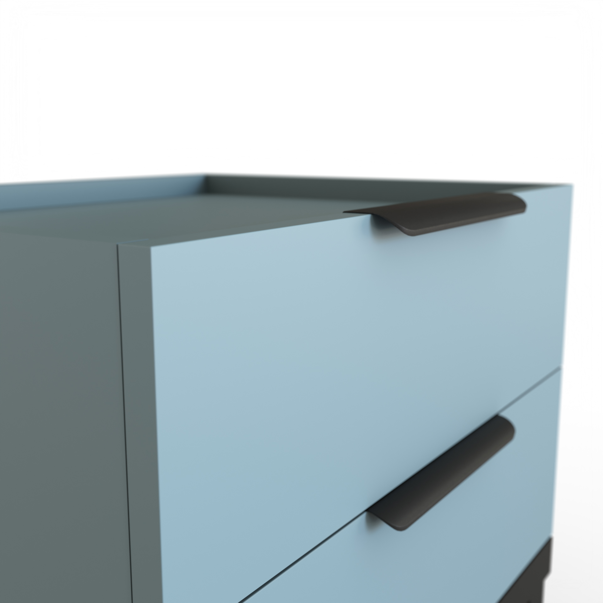 Оттенок тумбы привносит в интерьер нотку волшебства и умиротворения. А контрастируют с ним строгие, черные металлические ручки, добавляющие современности и элегантности.