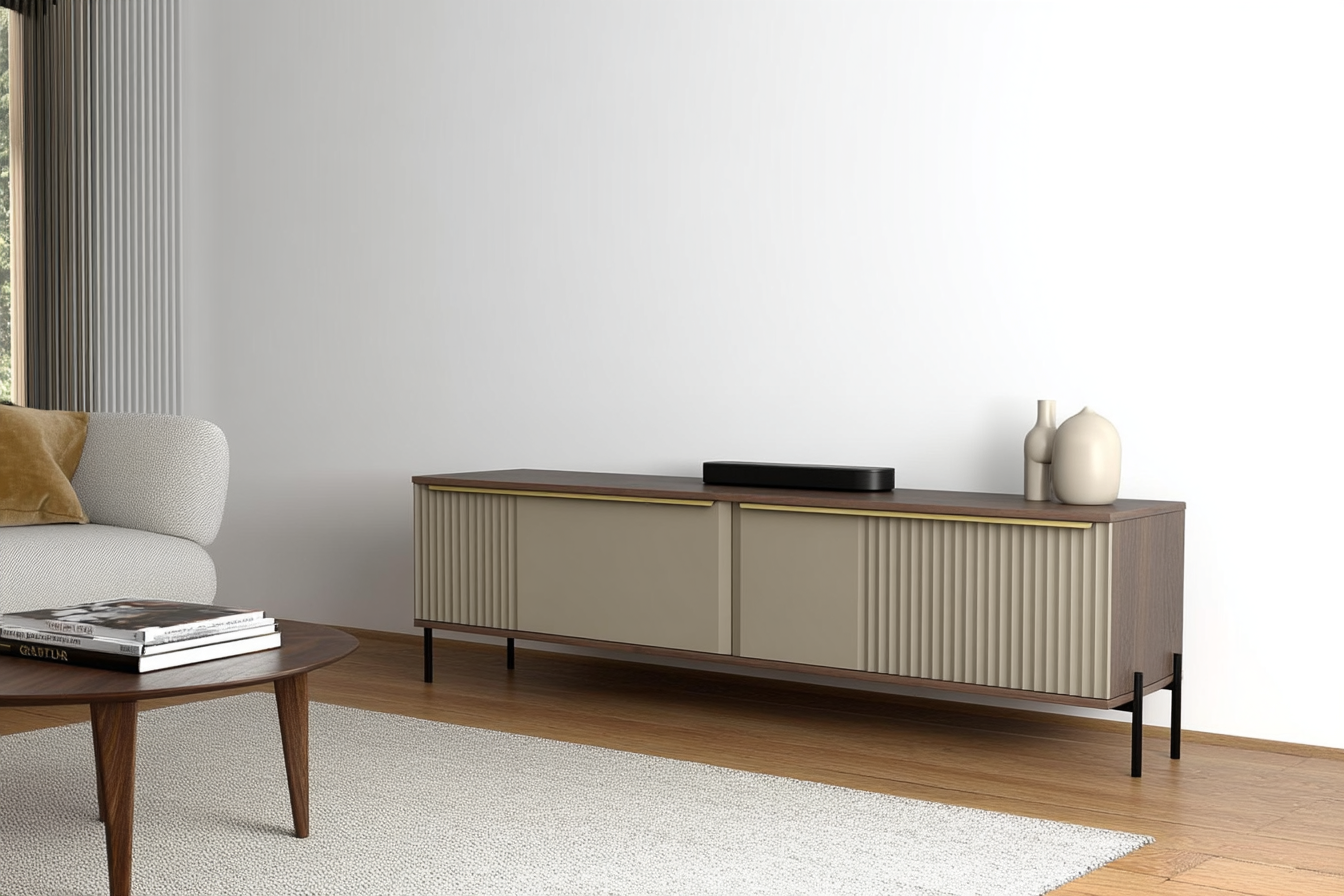 Тумба под телевизор "Комо" – это элегантное сочетание современного дизайна и практичности. Фасад из МДФ, покрытый бархатистой матовой поверхностью, приятен на ощупь и выглядит очень стильно. Корпус выполнен из ЛДСП с выразительной текстурой дерева, что добавляет теплоты и уюта в интерьер.