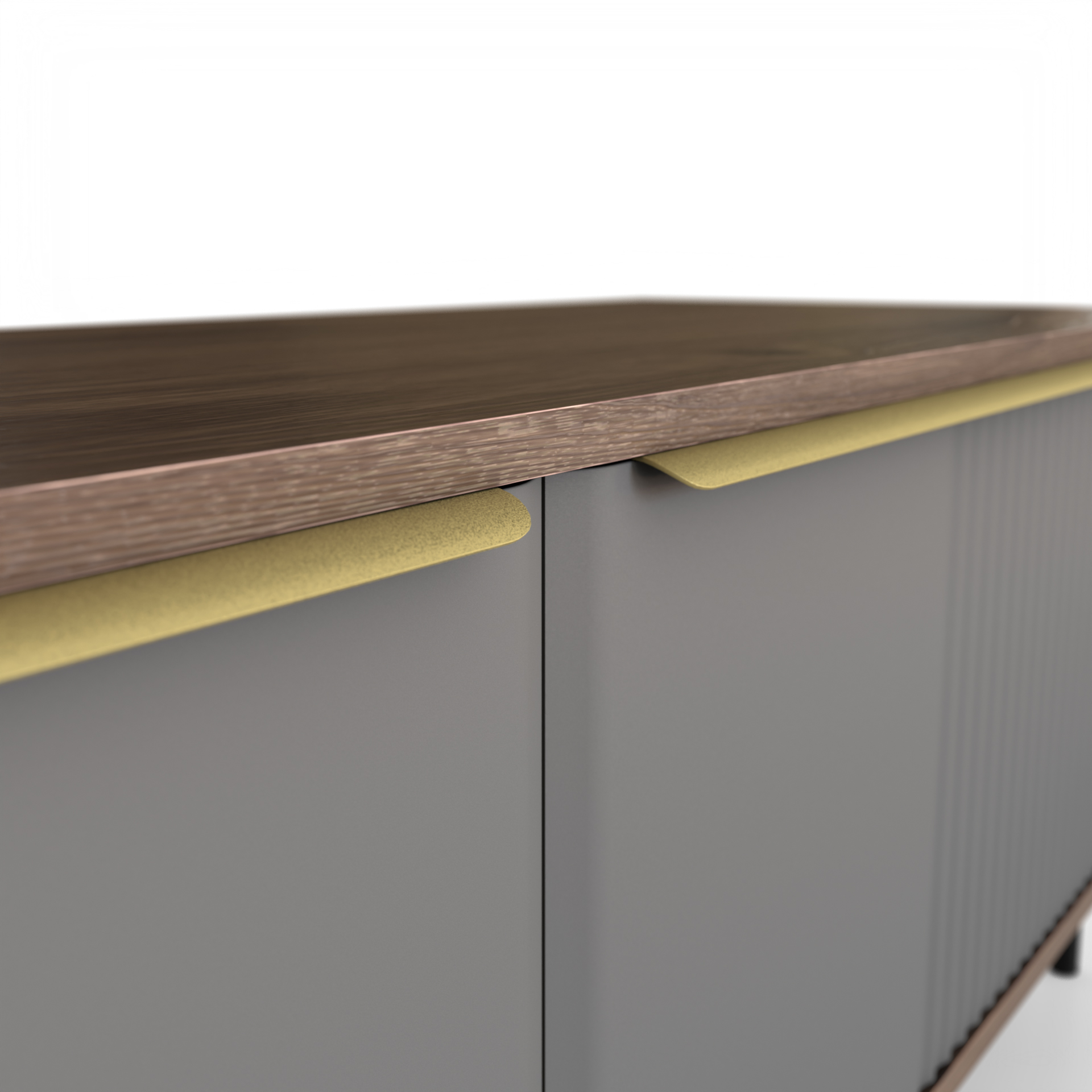 Особое внимание привлекают ручки в цвете золота. Они не просто функциональный элемент, а яркий акцент, который придает тумбе "Комо" неповторимую изюминку и подчеркивает ее современный стиль.