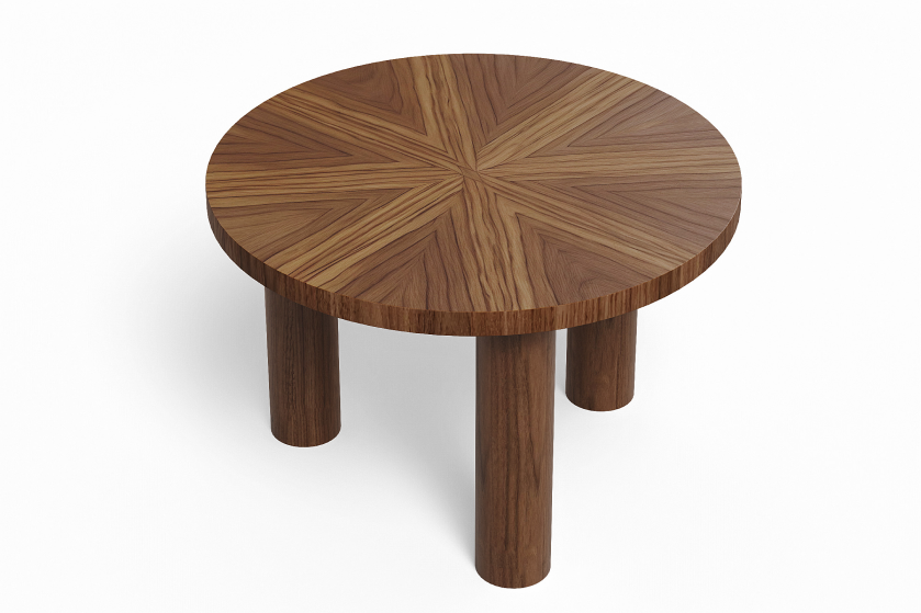 Особое внимание привлекает текстура столешницы, выполненная в виде стилизованного солнца. Этот оригинальный рисунок не только красив, но и создает ощущение тепла и позитива.