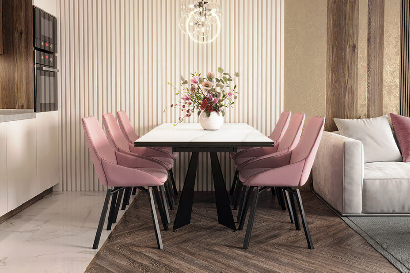 Стол Ponte из коллекции керамических столов Мебель МАСК — это стильное и функциональное решение для вашей столовой или кухни. Уникальные треугольные опоры создают визуальное ощущение лёгкости и парения, а столешница из импортной керамики с имитацией мрамора придаёт изделию элегантность и премиальный вид. Керамика устойчива к царапинам, пятнам и высоким температурам, что делает Ponte практичным выбором для ежедневного использования и особых случаев.