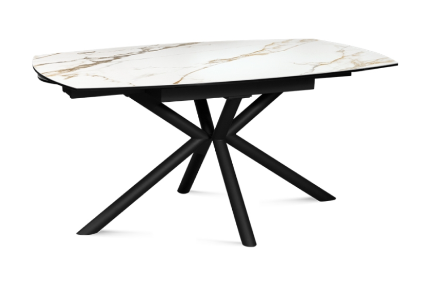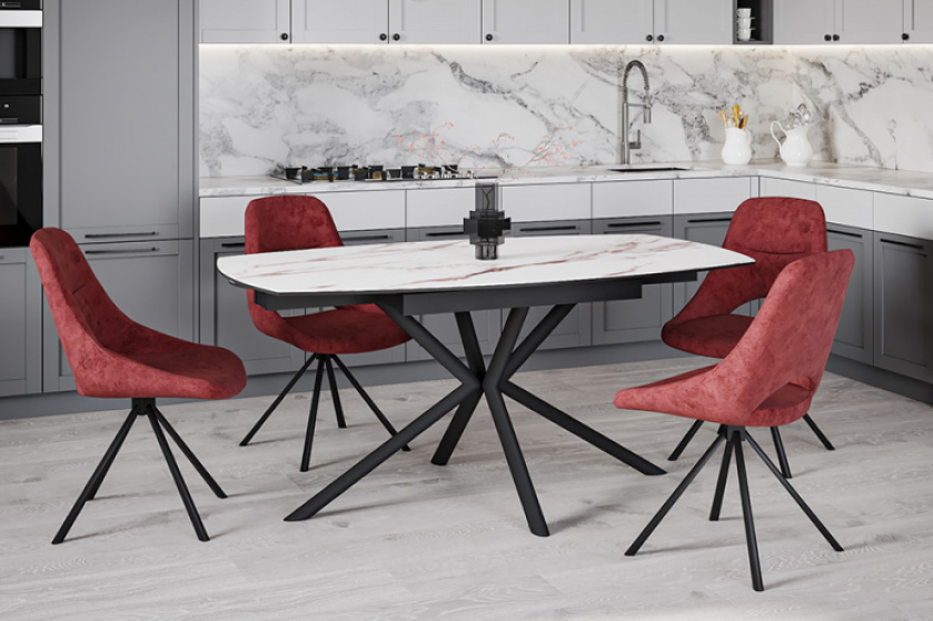Стол OSLO 160 ROSE GOLD CER — это обеденная модель, которая оснащена ручным механизмом раскладывания. С его помощью длину стола можно увеличить на 80 см: два боковых крыла выдвигаются, формируя овальную поверхность. Столешница выполнена из закаленного стекла и керамики, склеенных по технологии «триплекс». Розово-золотистые узоры повторяют текстуру камня. Металлический каркас с матовым черным покрытием состоит из наклонных опор, что придает нижней части вид большей легкости. Сдержанная цветовая палитра и лаконичные формы делают эту модель универсальной в стилистическом плане — стол подходит как для столовой, так и для кухни, независимо от выбранного дизайна.