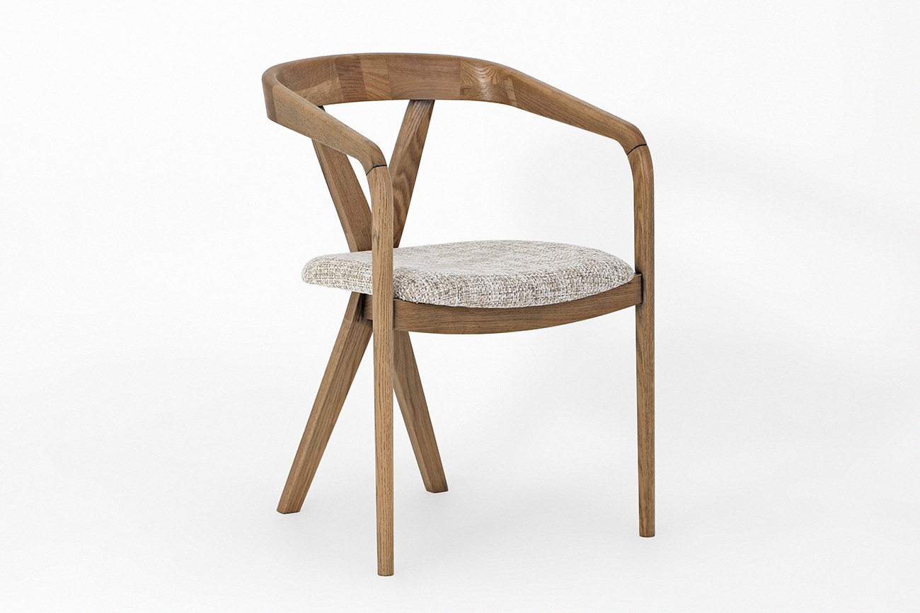 Кресло «Остин» — это смелое дизайнерское высказывание, где уют встречается с характером. Модель, обитая в теплую ткань Jasper beige, обрамлена деревянными элементами цвета 004 (Светлый дуб с черной патиной). Этот выразительный контраст светлой, мягкой обивки и темной, состаренной древесины создает динамичный образ в духе современного лофта или индастриала, наполненный индивидуальностью и стилем.