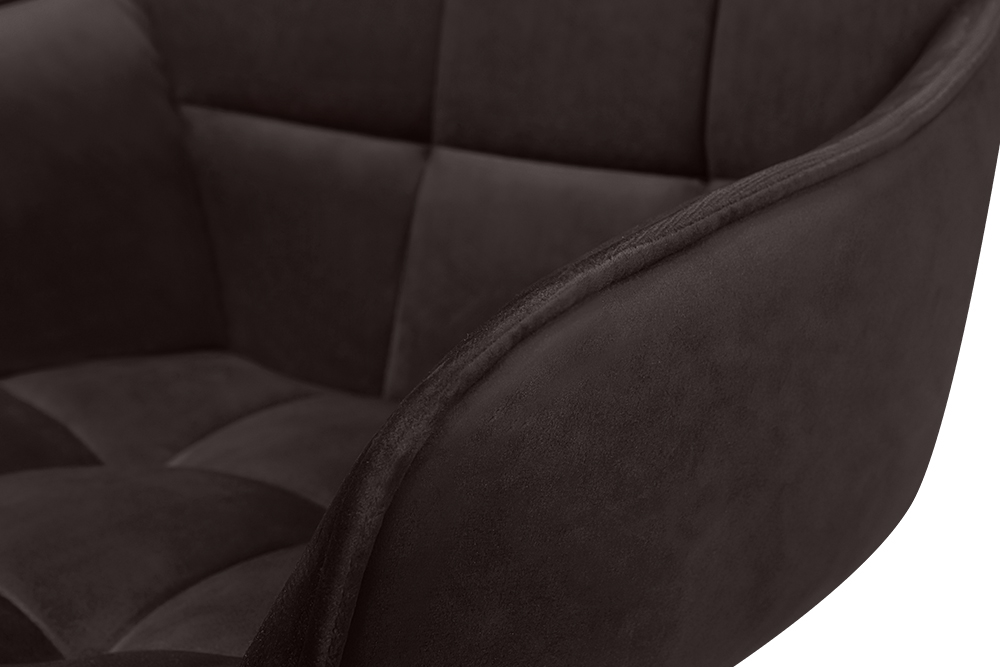 Стул B815-M Coffee VL76 — комфортное кресло-стул с мягкой бархатной обивкой в тёплом кофейном оттенке «кофе» и металлическими чёрными ножками. Удобная форма с высокой спинкой и подлокотниками позволяет расслабиться, а поворотный механизм сиденья добавляет функциональности и свободы движений. Эта модель станет элегантным решением как для кухни, так и для гостиной или рабочего уголка.
