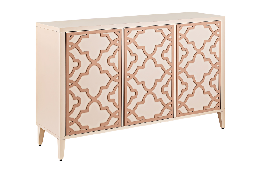 Комод Монако с декоративным узором изготовлен из высококачественного МДФ, покрытие эмаль. Внутреннее наполнение комода из ламинированного ДСП. Петли на распашных дверках комода с механизмом push-to open. Опоры из массива бука. Возможно изготовление данной модели в нестандартных размерах и любой цветовой гамме.