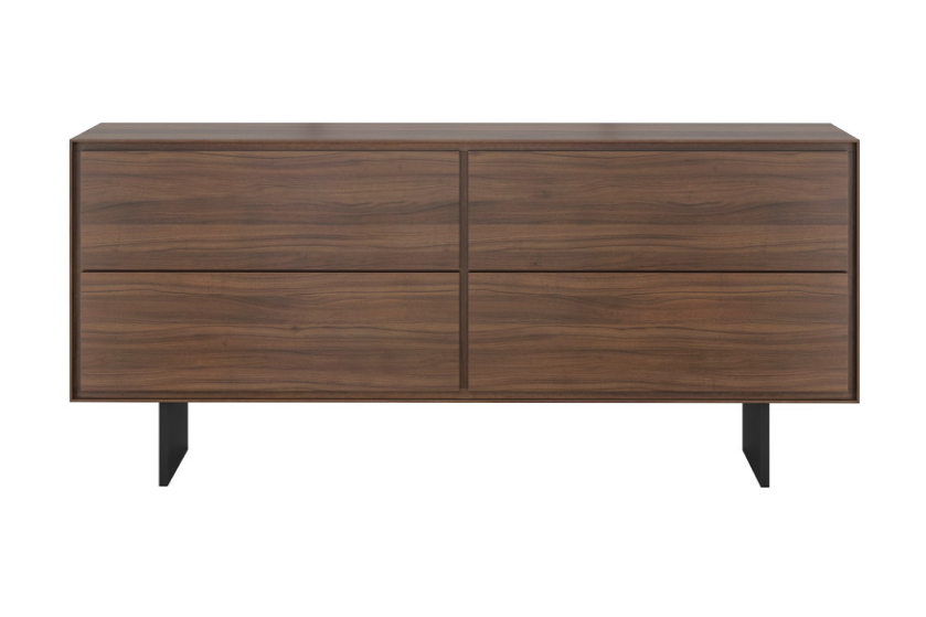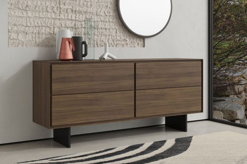 Буфет на высоких ножках, выполнен из высококачественного, сертифицированного МДФ в отделке со шпоном ореха. Оснащен четырьмя выдвижными ящиками с механизмом открывания push pull. Этот изысканный предмет мебели не только привнесет в ваш интерьер нотку элегантности, но и станет практичным решением для хранения.