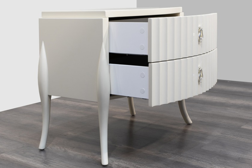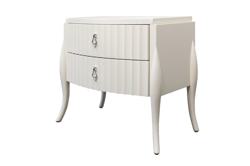 Элегантная и красивая прикроватная тумба от итальянского бренда Fratelli Barri, станет украшением любой спальни. Ее аккуратные пропорции и изящные линии подчеркивают неоклассическую эстетику, а рифленые фасады добавляют визуальной глубины и текстуры, привлекая внимание к каждому элементу. Высокие изогнутые ножки придают легкость, создавая эффект парения.