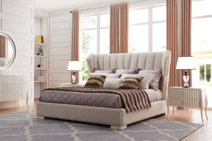 Отделка в бежевом матовом лаке придает изделию шикарный вид, а использование массива дерева и высококачественного МДФ класса Е1 гарантирует долговечность и надежность. Хромированная фурнитура блестит, завершая элегантный образ, а черная бархатная ткань, декорирующая дно ящиков, добавляет роскоши и контраста.