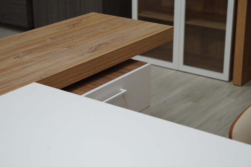 Стол Чикаго с приставкой в белом исполнении — стильное и функциональное решение для кабинета или домашнего офиса. Его лаконичный дизайн, продуманная конструкция и просторная рабочая поверхность обеспечивают удобство при работе, а свежий белый цвет делает пространство светлее и визуально более чистым. Этот офисный стол от Мебель МАСК — идеальный выбор для тех, кто ценит практичность и современную эстетику.