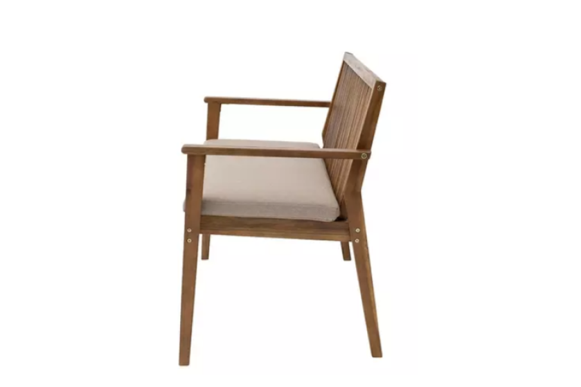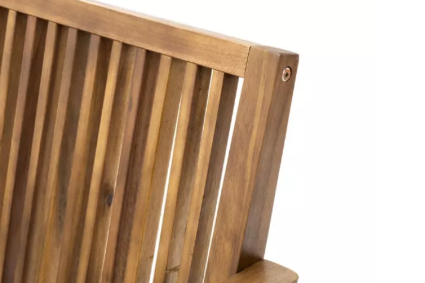 МатериалМассив акации, материал подушки - Olefin, отделка экомаслом “натуральный тик”, анодированная фурнитура из нержавеющей стали