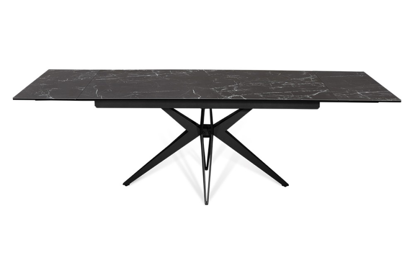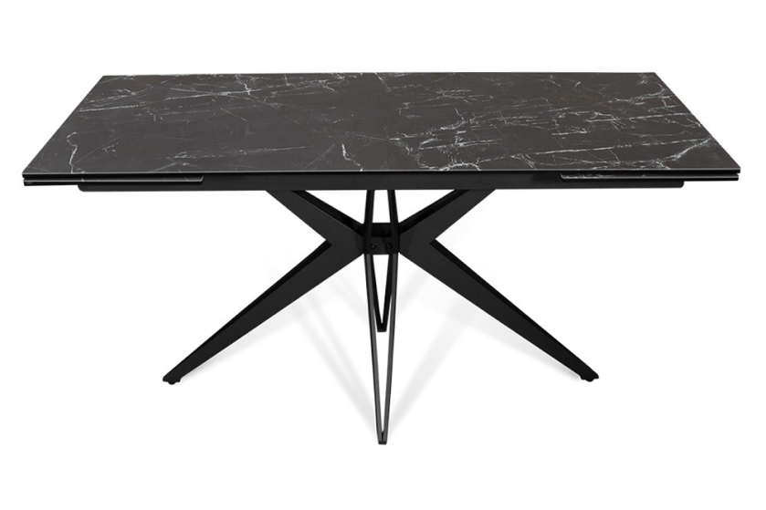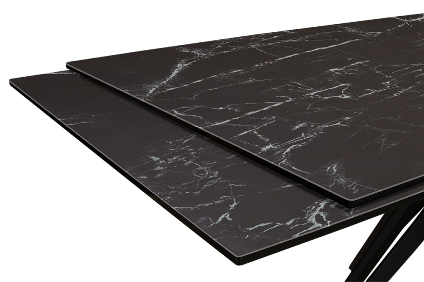 Модель GENT 160 BK MRB CER представляет собой солидный и широкий стол, который станет отличным выбором для обеденной зоны на кухне или в гостиной. Одним из ключевых достоинств данного стола является его надежный каркас, выполненный из нержавеющей стали, покрытой глубоким черным лаком. Ножки изделия имеют значительную толщину и оригинальную изогнутую форму, что гарантирует как устойчивость, так и элегантный внешний вид. Керамическая матовая поверхность стола декорирована с выразительными прожилками, придающими ему натуральный и стильный вид. Более того, современный раскладной механизм ручного привода позволяет увеличить длину стола на 80 см всего за несколько секунд, что делает его практичным и удобным для использования.