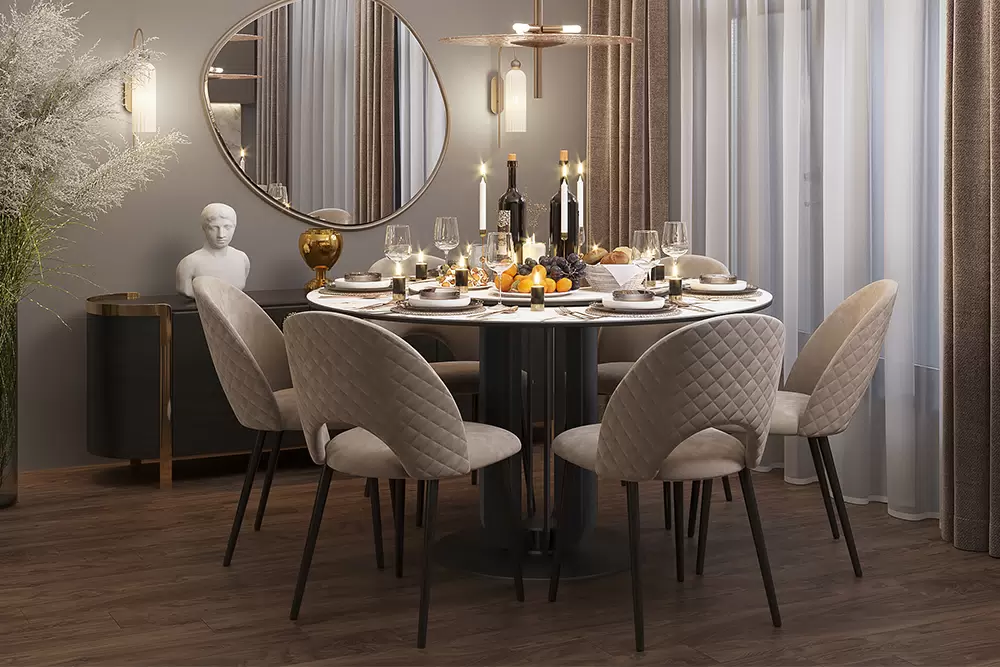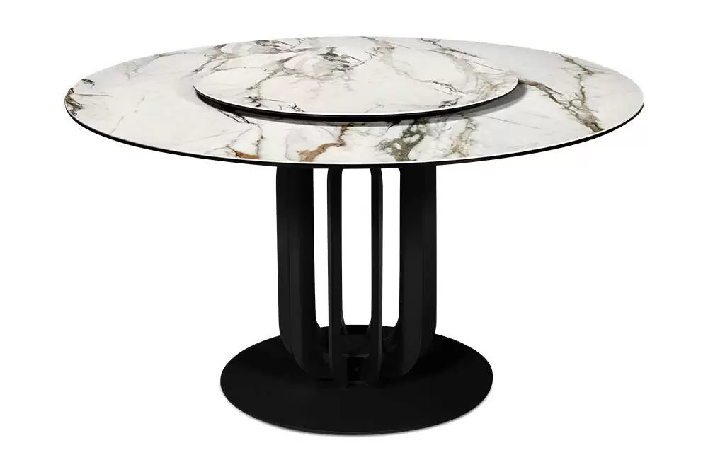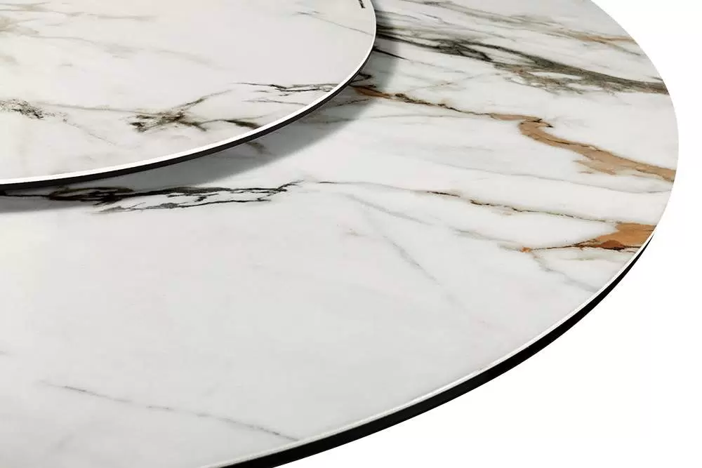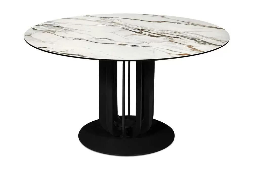 Обеденный стол Bolzano 138 Gold Cer — стильный премиум предмет интерьера с керамической столешницей “Gold Cer”. Металлическая опора обеспечивает устойчивость и визуальную лёгкость, а круглая форма диаметром 138 см делает стол идеальным решением для небольшой столовой или уютного обеденного уголка. Керамическая поверхность устойчива к царапинам, высокой температуре и легко очищается, что гарантирует долговечность и практичность в ежедневном использовании.