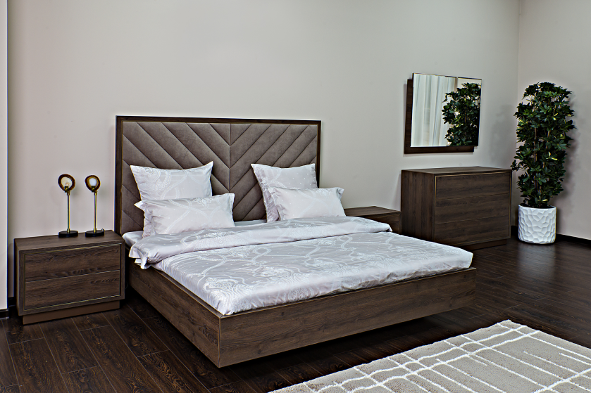 Кровать Эклипс, несомненно, станет украшением вашей спальни. Кровать из ламинированного ДСП высокого качества с текстурой натурального дерева. Изголовье выполнено из износостойкой ткани, а также декорировано пластиковым металлизированным молдингом. Кровать возможна с подъемным механизмом и бельевым ящиком. Возможно изготовление по индивидуальным параметрам.
