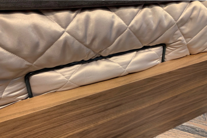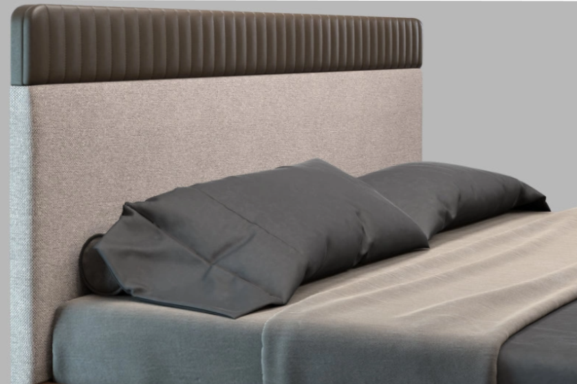 Обивка изголовья выполнена из экокожи и текстиля, доступного в ассортименте фабрики. Для создания металлических элементов кровати используется прочный высококачественный металл.