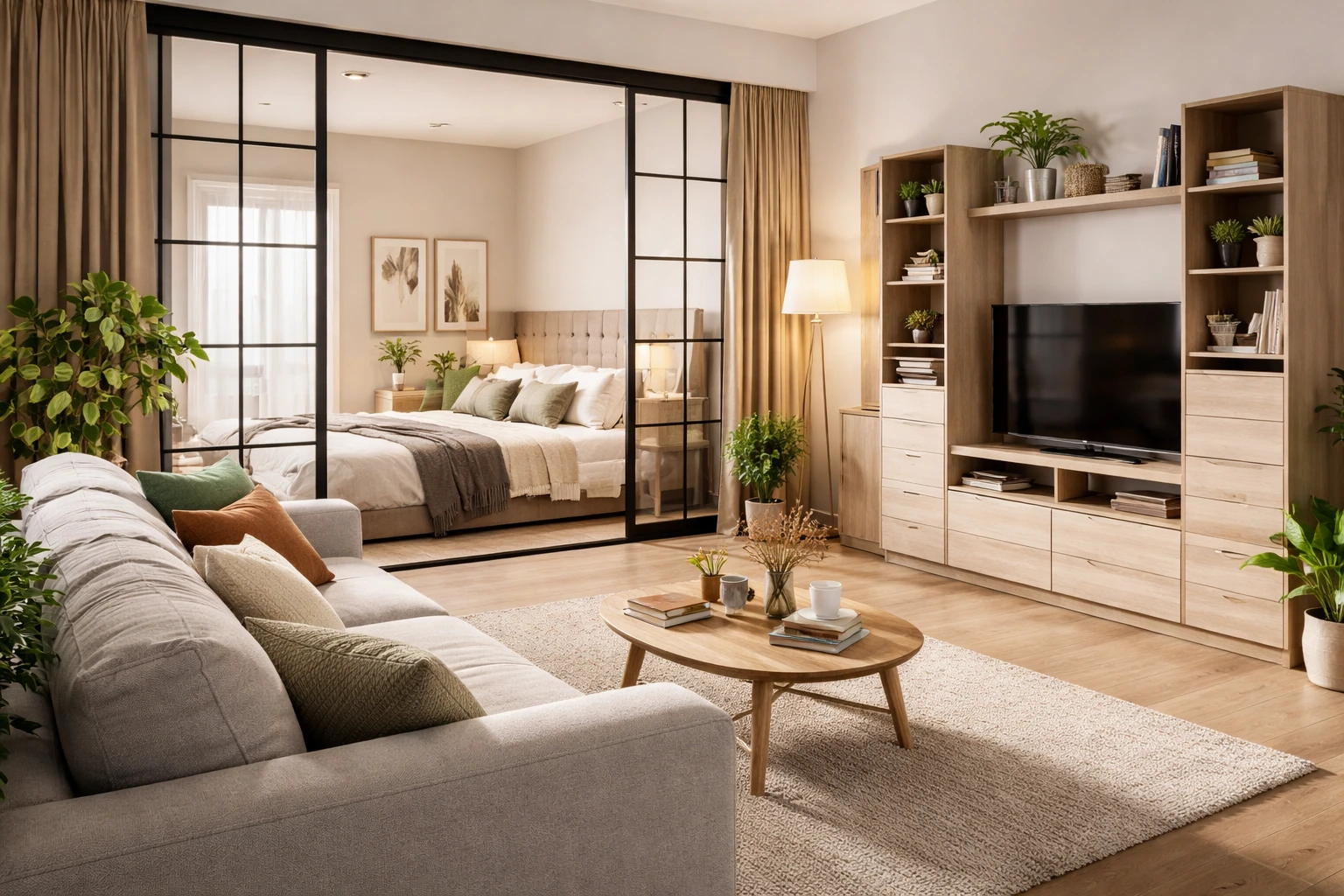 Гостиная-спальня - это не временное решение, а полноценное пространство для жизни. Удачное зонирование, продуманная планировка и правильно подобранная мебель позволяют создать интерьер, который будет комфортным каждый день.